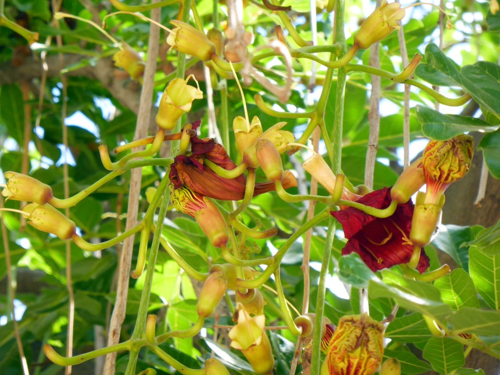 Der Leberwurstbaum gehört zur Familie der Trompetenbaumgewächse und ist in ganz Afrika verbreitet. Das Aussehen der Frucht erinnert an eine Leberwurst, was der Art ihren Namen gab (übrigens sehr passend: über die Berliner Straße, eine ca. 100 m lange Leberwurstbaumallee, gelangt man zum Eingang der deutschen Botschaft in Kairo). Es sind mittelgroße Laubbäume. Der becherförmige Kelch öffnet sich nachts. Die Früchte werden bis zu 50 cm lang, bis zu 7 Kilogramm schwer, sind wurstförmig, faserig verholzt und sehr stabil. Die senkrecht herunterhängenden Fruchtkörper enthalten braune Samen, die zu bevorzugten Nahrungsquellen für große Säugetiere wie Elefanten und Giraffen zählen, aber auch Paviane können die harten Kapseln öffnen. Ihr Inhalt ist für den menschlichen Verzehr geeignet, stellt aber aufgrund eines eigentümlichen Geschmacks und Konsistenz eine eher selten genutzten Nahrungsquelle dar. Früchte, Rinde und Wurzeln werden jedoch von Einheimischen zur Herstellung von Heilmitteln (gut gegen Bandwürmer, Geschwüren, Ruhr, Rheuma und Syphilis) verwendet. Die in der Form der Frucht hervorgerufenen Assoziationen spielt eine Rolle bei der Anwendung mit dem Ziel der Bruststraffung bzw. Brustvergrößerung oder Penisvergrößerung. Keine dieser Zuschreibungen ist bislang wissenschaftlich erwiesen.