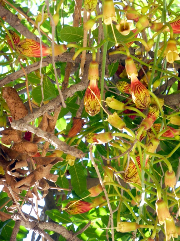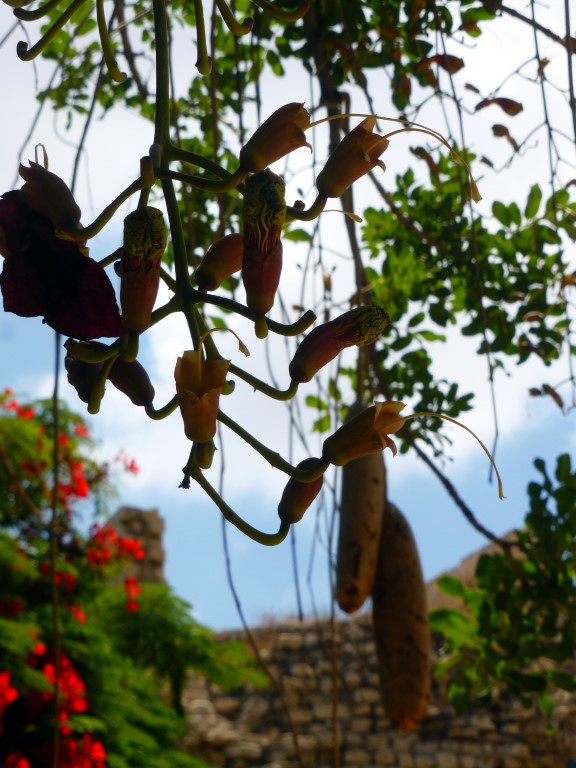 Nicht weit vom Seemannsheim, befindet sich der Shalalalat Garten mit Resten der alten Stadtbefestigung und einer Zisterne (die leider aber nicht mehr besichtigt werden kann). Einer, von wenigen öffentlichen Parks in der Millionenmetropole Alexandria. Vor allem abends ist er ein beliebter Treffpunkt für verliebte Pärchen, Familien mit ihren Kindern samt Platz zum Spielen, Picknickwiese, Openairkonzerte während dem Ramadan, usw. Wir nutzen ihn immer als angenehmen Abkürzungsweg direkt zur Bibliotheca Alexandria oder zur Uferpromenade. Dabei kommen wir jedes Mal an zwei sehr wunderschönen Leberwurstbäumen vorbei. Zurzeit blühen sie (allerdings erst mit Einbruch der Dämmerung öffnen sich die Blüten) und sind besonders schön anzusehen.