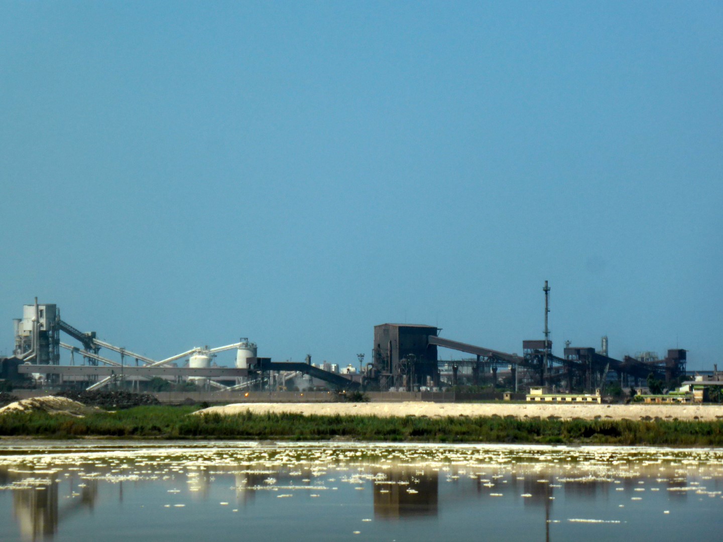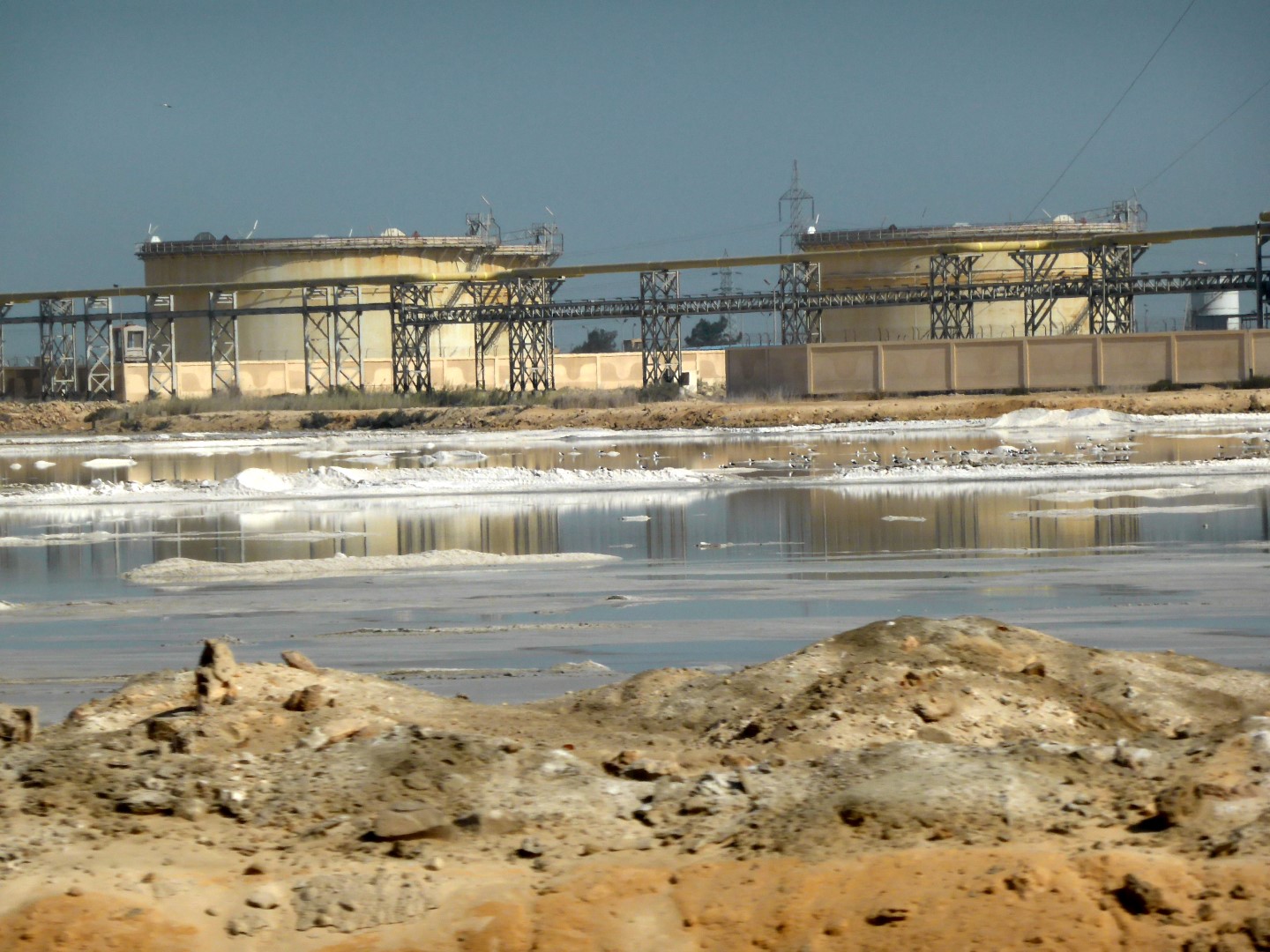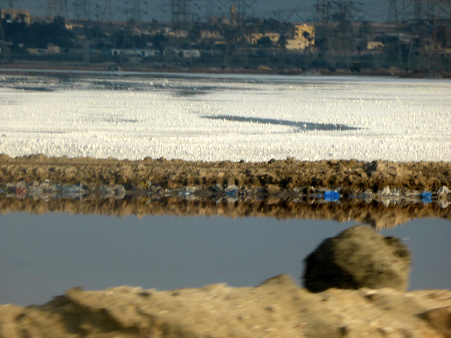 Es ist immer wieder faszinierend, wie sich im Lauf der Zeit die Farbe des Wasser verändert. Am Beginn noch gewohnt grünlich, dann mit zunehmender Konzentration des Salzes, von rosa bis violett schimmernd. Salzinseln entstehen und bilden im Laufe der Zeit eine einzige, mit Rissen durchzogene, weiße-graue Fläche. Gerade im besonderen Licht des Nachmittags, im Hintergrund die Industrieanlagen, Gasabfackeltürmen und der Skyline von Alexandria, die perfekte Kulisse für einen Futurfilm.