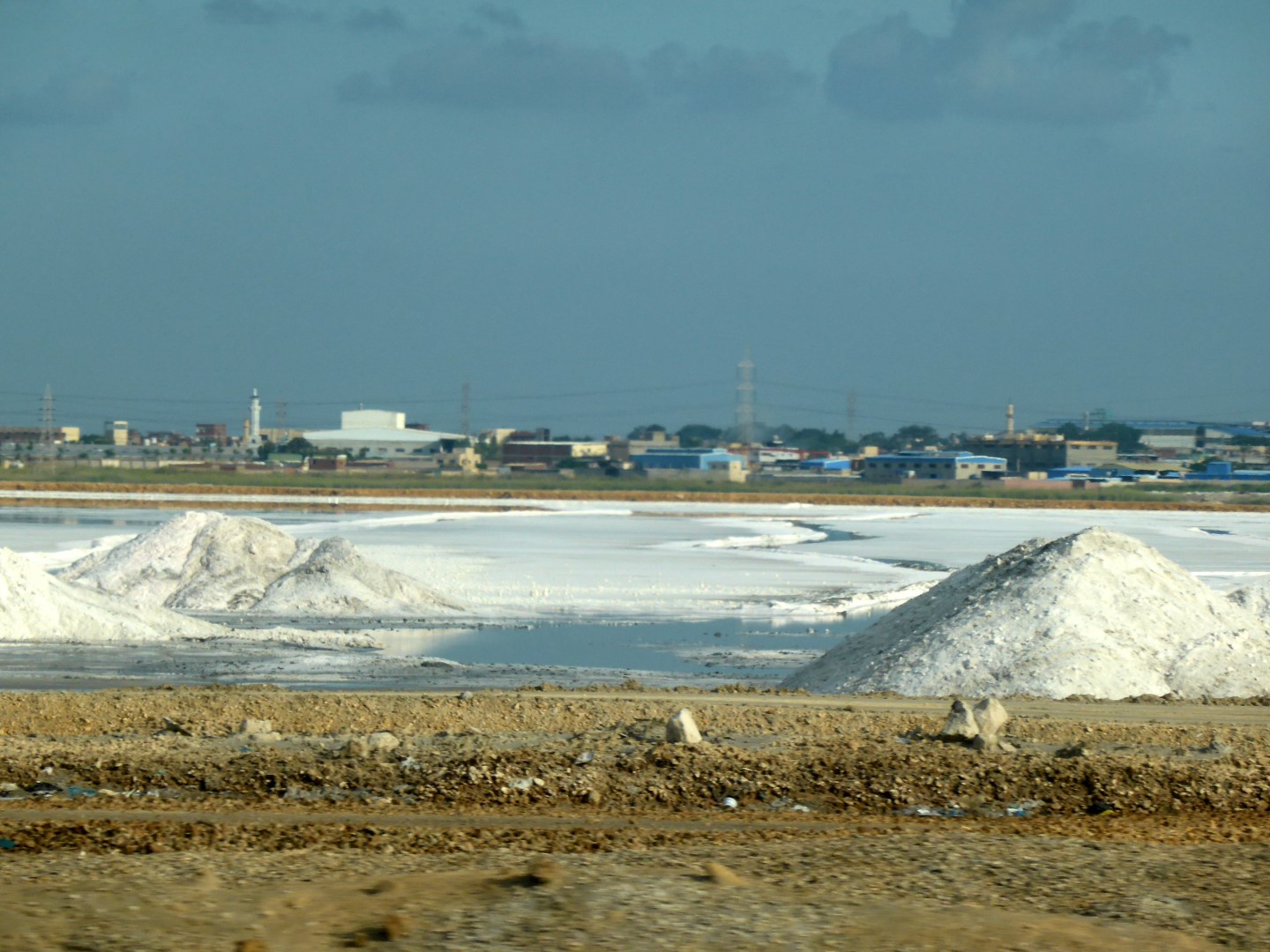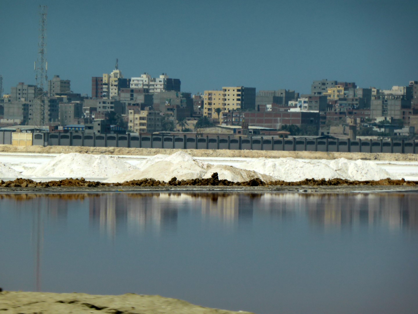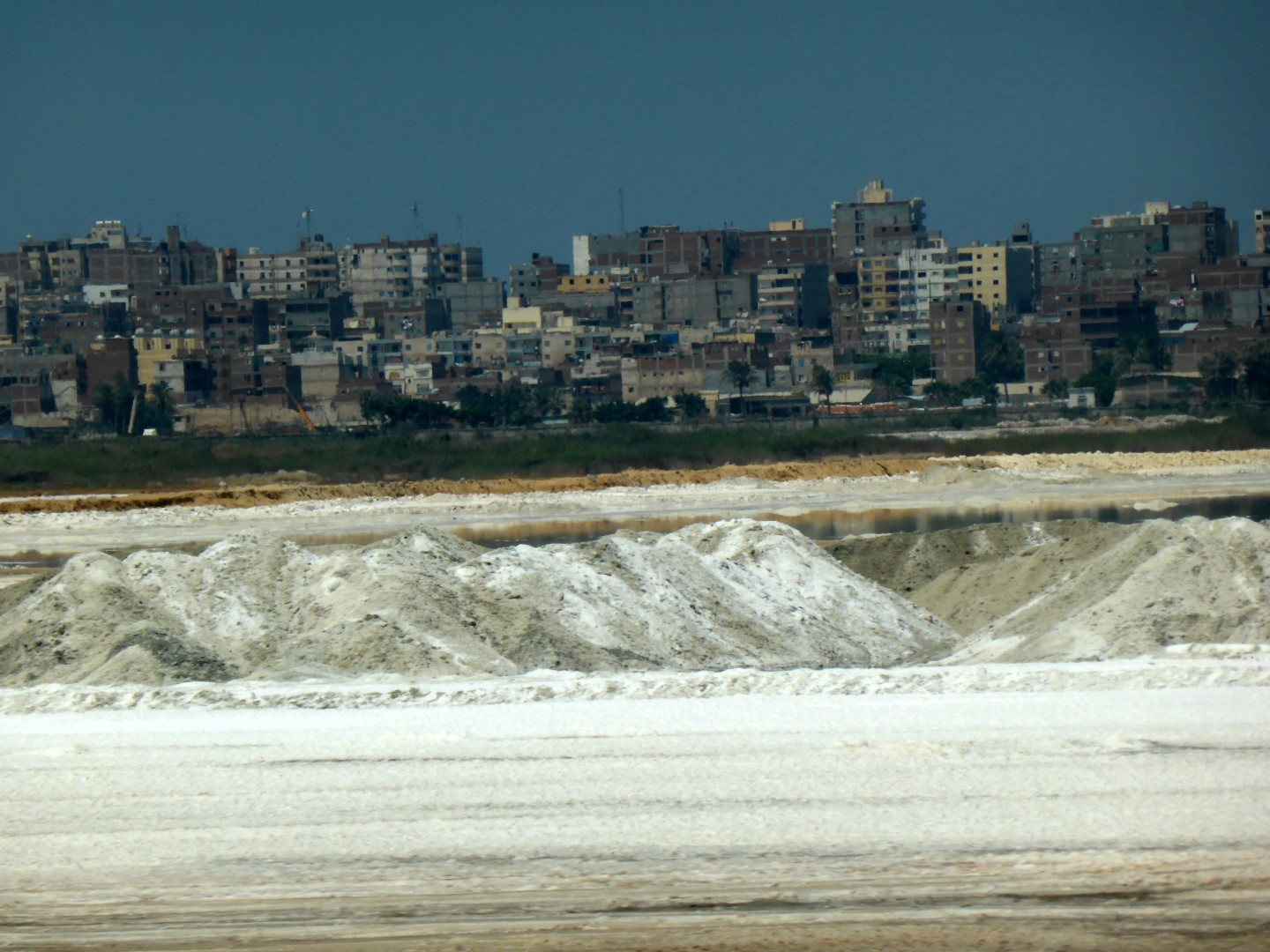 Von Kairo aus mit dem Auto nach Alexandria kommend, durchquert die Dessert Road Autobahn, ein riesiges Gebiet an Salzseen, das zur Gewinnung von Salz genutzt wird. Durch Verdunstung wird dem eingeleiteten Meerwasser nach und nach das Wasser entzogen, bis am Ende nur noch das Salz übrig bleibt. Schaufelradlader schieben das so gewonnene Salz zu riesigen Haufen zusammen und verladen es zum Abtransport auf LKWs. Gut vorstellbar, dass auch ein Teil davon, als Streusalz nach Deutschland verkauft wird.