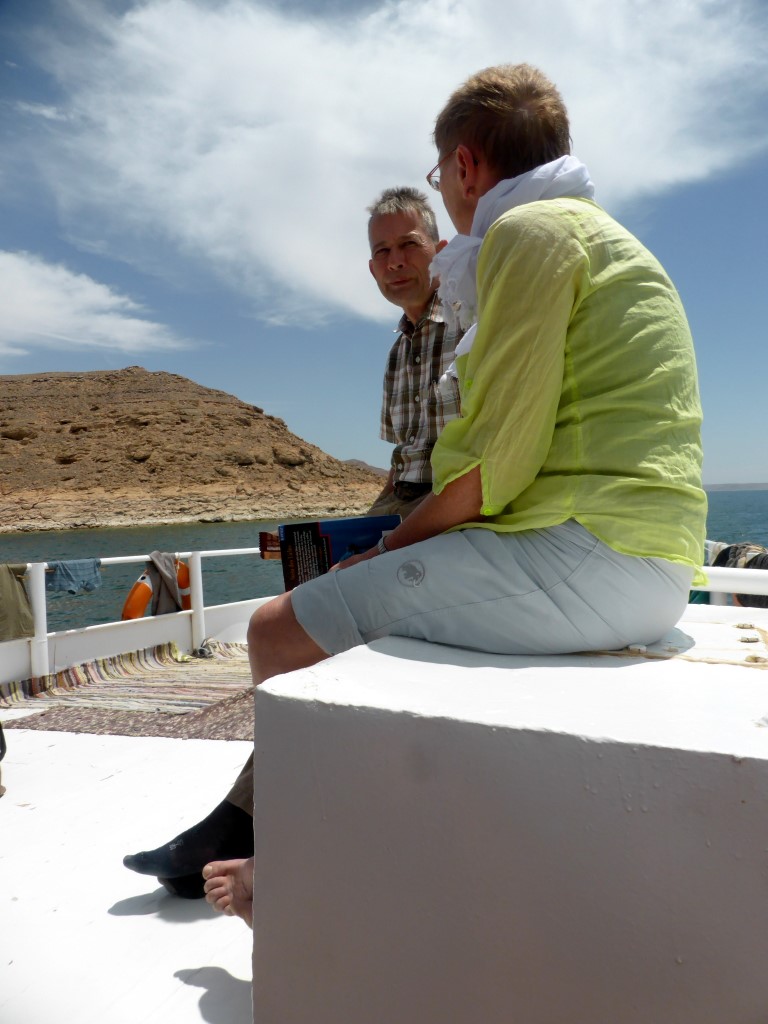 Und nun, eine wunderbare Reise auf einem kleinen Kreuzfahrtschiff zurück in die faszinierende, ägyptische Vergangenheit bis in die Steinzeit, mit vielen Wanderungen in eine unwirtliche Natur, einem unbeschreiblichen Sternenhimmel, nichts als Naturgeräusche, Begegnung mit einem Nilkrokodil und vielem mehr.