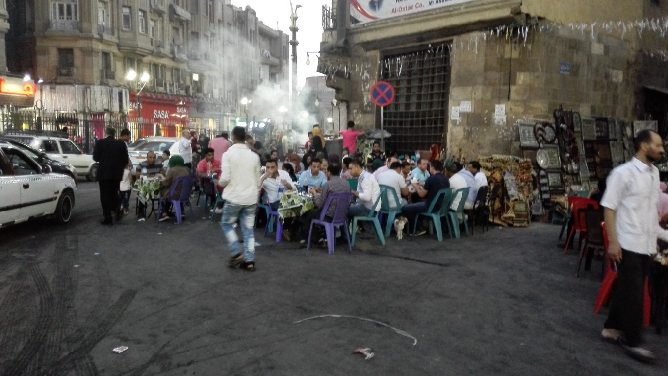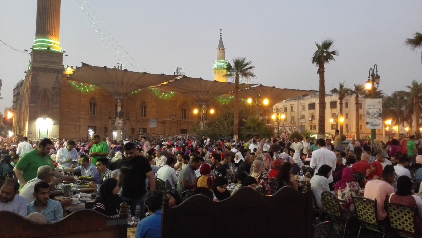Die Zeit vor dem Fastenbrechen ist eine ganz besondere Zeit. So ab 5 Uhr abends wird die Stadt immer leerer. Die Autos werden weniger und die, die noch auf der Straße sind haben es eilig an ihren Zielpunkt zu kommen. Gegen 18.30 ist dann quasi Stillstand. Eine gespenstische Ruhe ist in der Stadt, ganz im Gegensatz zum normalen Treiben um diese Uhrzeit. Man hört kein Hupen, nur das Vogelzwitschern und manchmal einen Hund bellen. Endlich kommt der Ruf des Muhezin und das Fastenbrechen kann beginnen. Die Menschen, die bereits einige Zeit vor gedeckten Tischen, häufig auf den Bürgersteigen an den Straßen oder vor Restaurants saßen beginnen mit dem Essen einer Dattel und dann wird in windeseile das Essen und das Trinken des Tages nachgeholt. Das Ganze geht in der Regel recht schnell ab, alle sind ja ausgehungert. Sogenannte Iftar Einladungen (so heißt das Fastenbrechens) gibt es Viele und man sitzt dann danach noch mit den geladenen Gästen zusammen.