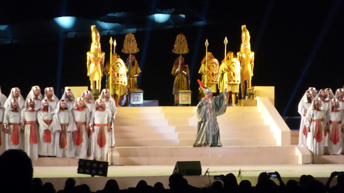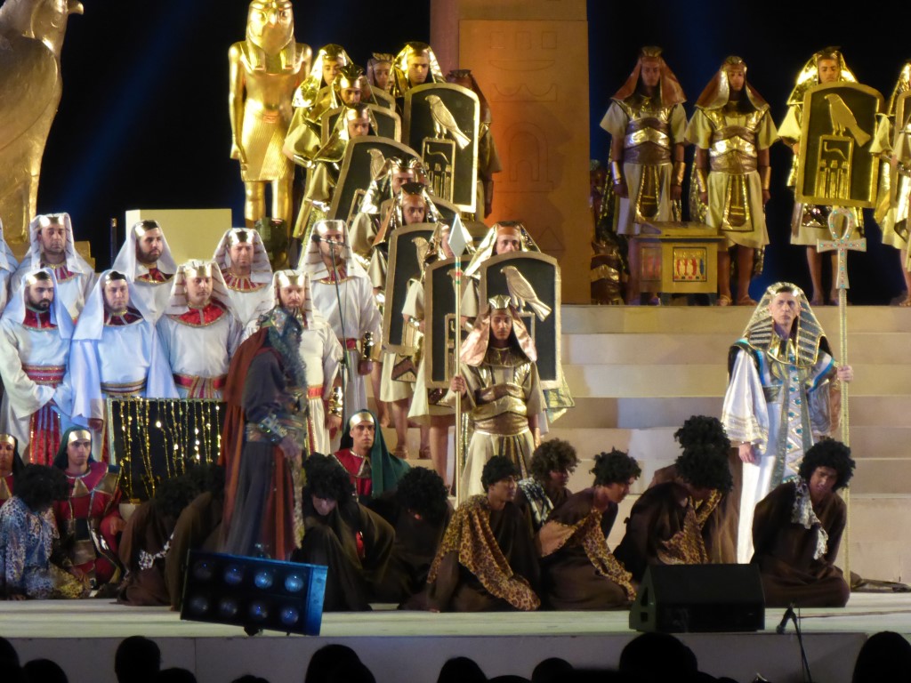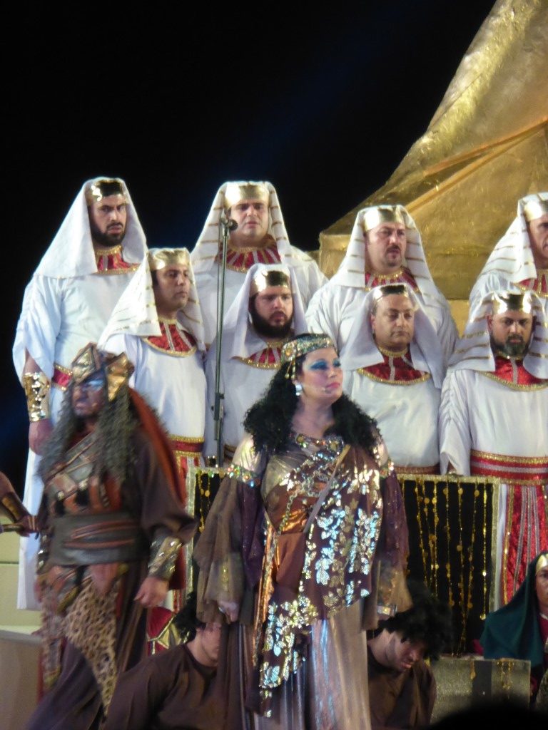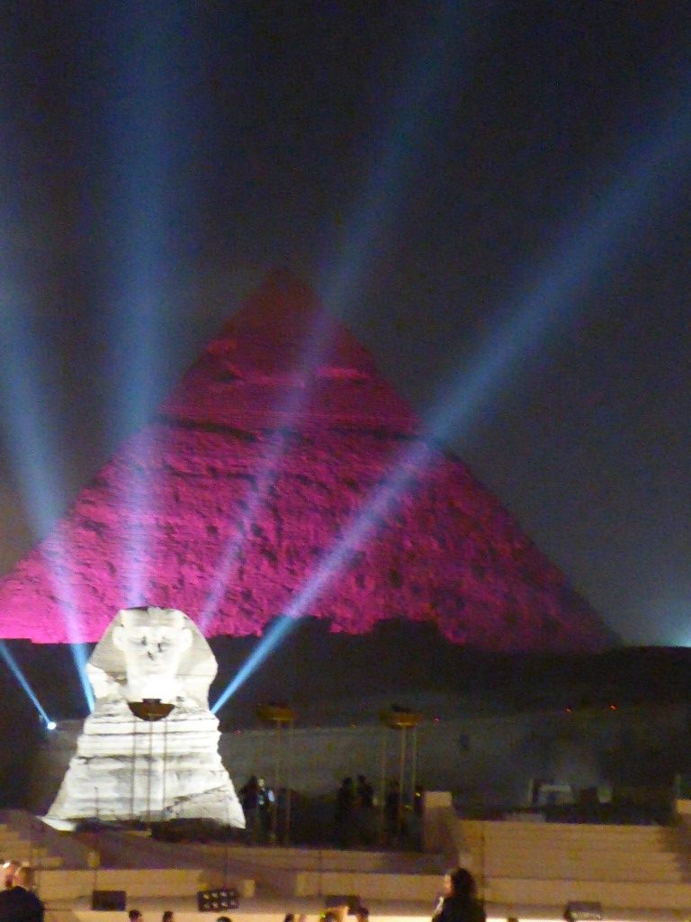 Endlich fing die Oper an. Der Tontechniker war etwas schwerhörig, zumindest hat er bis zum Ende der Veranstaltung es nicht wirklich hinbekommen, alle Mikrofone so zu verbinden, dass Jeder betroffen war und man Jedem auch verstand. Zumindest besserte er sich bis zum Ende der Veranstaltung. Die Aida selbst sang etwas komisch, doch alle anderen Sänger waren sehr gut und die kolossale Stimmung mit der beleuchteten Sphinx und den Pyramiden ist schon wirklich toll gewesen. Nächstes Jahr soll es wieder stattfinden. Vielleicht ja auch mit euch?