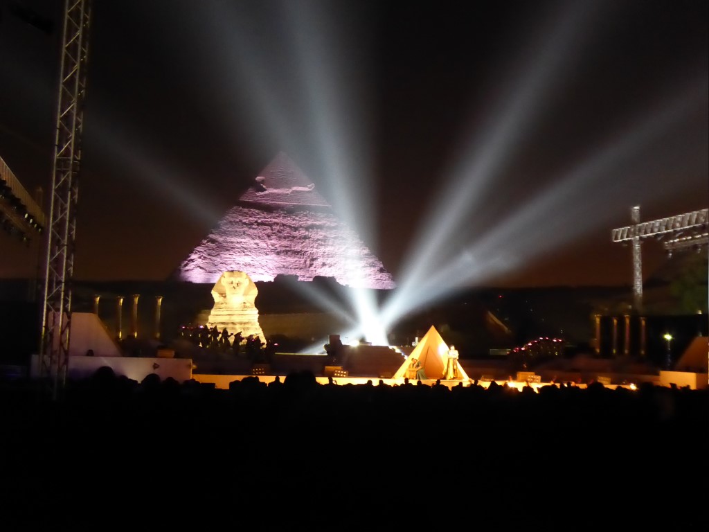 In Kairo gab es ein ganz besonderes Event – die Opernaufführung der ADA vor den Pyramiden. Früher gab es das regelmäßig jedoch war die letzte Aufführung 2004. Danach verbunden durch den Rückgang des Tourismus und der Revolution fehlten einfach die Menschen dafür.