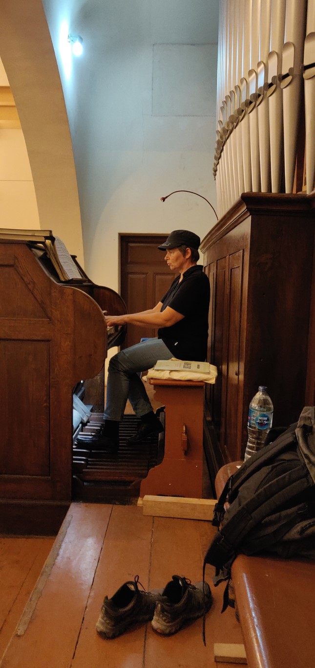 Ganz nebenbei erklärte die Organistin noch einer Gruppe Sprachschüler aus dem Goethe Institut die zum ersten Mal in ihrem Leben in einer Kirche und einem Orgelkonzert waren, die Spielweise und ließ sie direkt auf der Empore zuschauen.