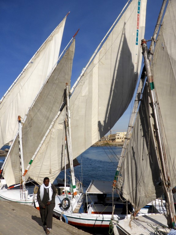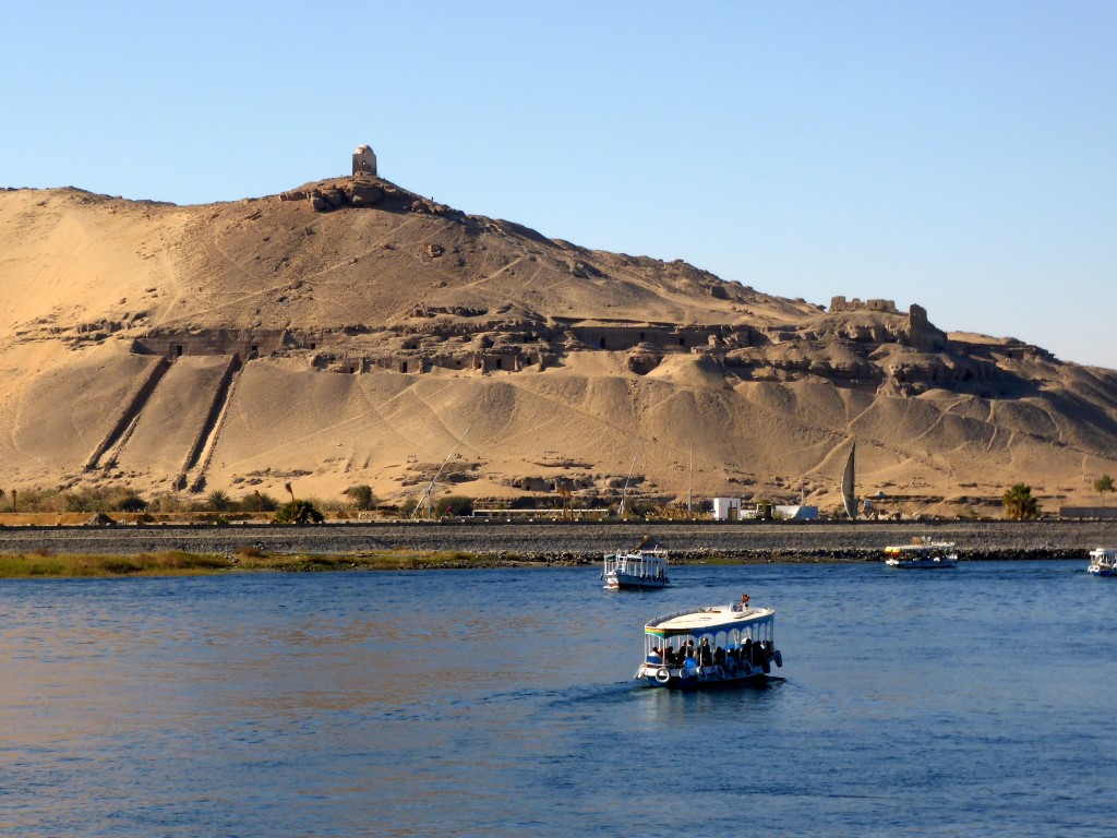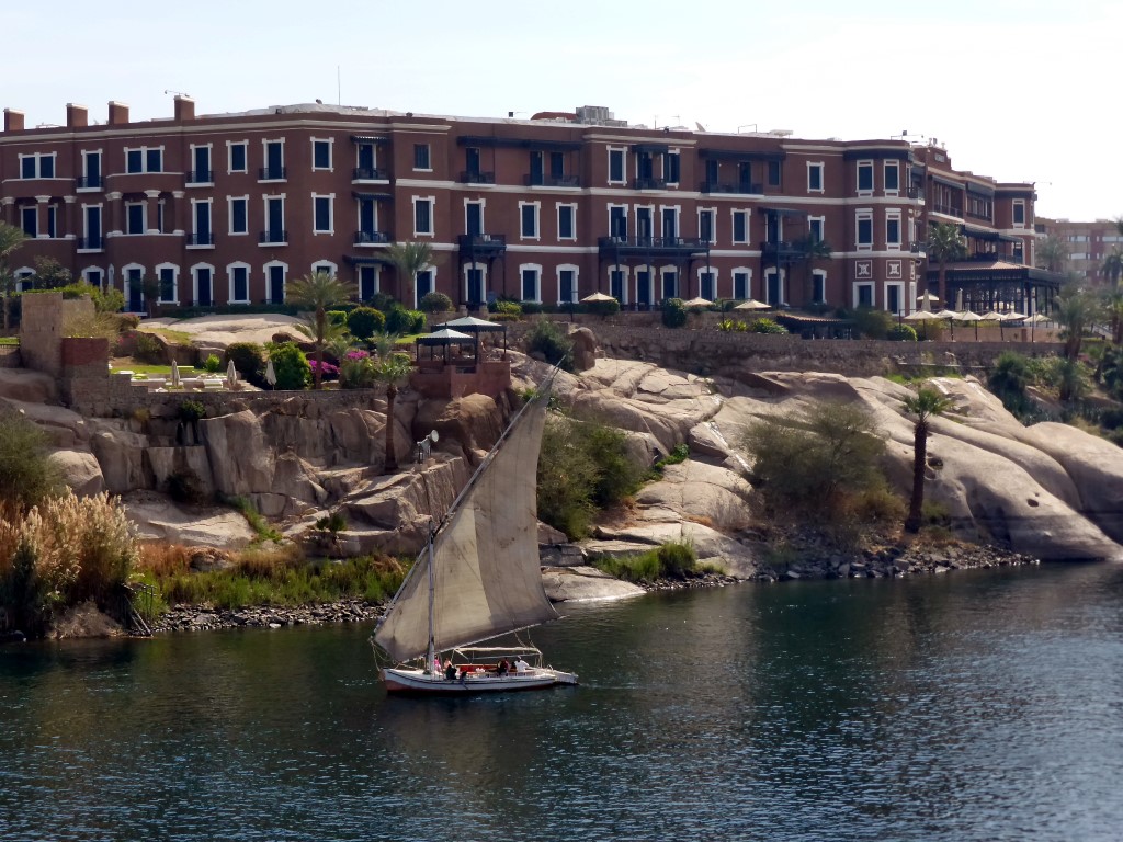 Das berühmteste (und teuerste) Hotel am Platze, ist das Old KataraKt Hotel. Agatha Christi schrieb hier ihren Krimibestseller „ Tod auf dem Nil“. Um zu unserem kleinen, aber sehr originellen, mit tollem Ausblick auf die Felsengräber von Kubbet el Haua auf dem gegenüberliegenden Westufer zu kommen, mussten wir jedes mal eins der kleinen Nilfähren nehmen, oder mit einer der wunderschönen Feluken, den typischen Segelboten auf dem Nil. Parallel zur Uferpromenade verläuft die Bazarstraße, mit unendlich vielen buntbestücken Läden und Ständen. Manchmal allerdings auch etwas nervig, wer einen zu langen Blick riskiert, hat schon verloren. Sehr sehenswert ist das 1997 eröffnete Nubische Museum und unglaublich interessant sind die Granitsteinbrüche (nur hier gibt es den rötlichen Assuan-Granit) mit dem unvollendeten Obelisken. Mit 42 m und 1168 t, wäre er der bei Vollendung der größte je geschaffene Obelisk gewesen.