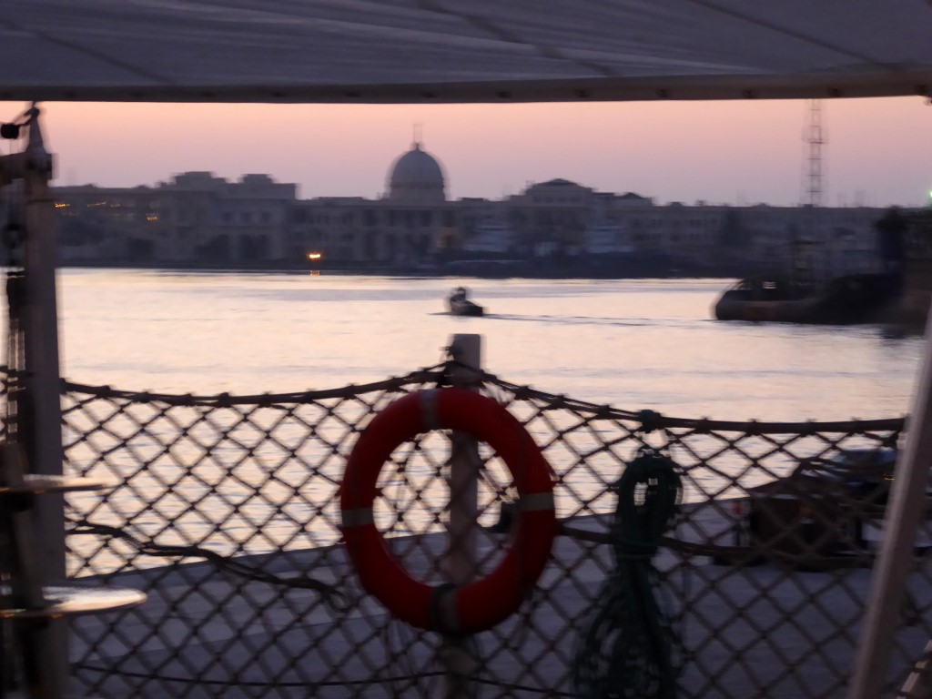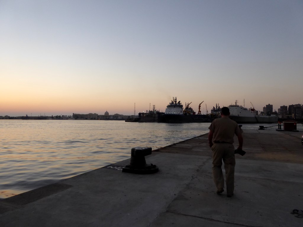 Manchmal kommen in den Hafen von Alexandria auch Armeeschiffe, die gerade entweder den Suez Kanal durchquerten oder sonstige Aufgaben wahrnahmen. Letzte Woche war es eine kanadische Fregatte, die gerade von einer Übung im Schwarzen Meer kam und nun sich auf neue Aufgaben im Mittelmeer vorbereitete.