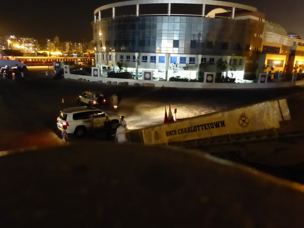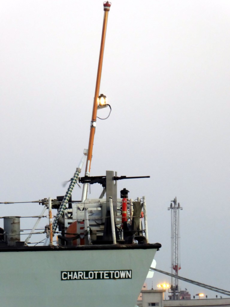 Die Fregatte Charlottetown stand am Pier für Kreuzfahrtschiffe, deswegen war der Zugang für die Eingeladenen relativ einfach. Hier führt ein eigener Zugang vom Hafentor aus direkt dorthin.