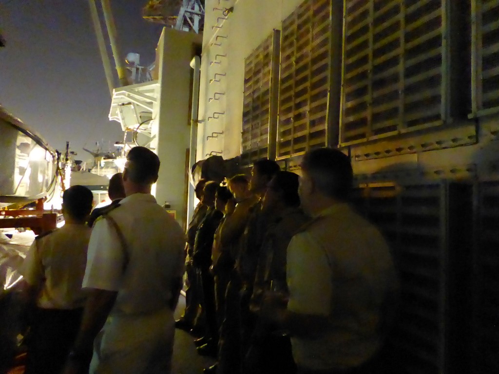 Plötzlich ein Pfeiffton – alles erstarrte, also musste ein wichtiger Mensch das Schiff betreten. So war es auch, der ranghöchste Mariner von Ägypten kam mit allen militärischen Ehren und Grüßen an Bord.