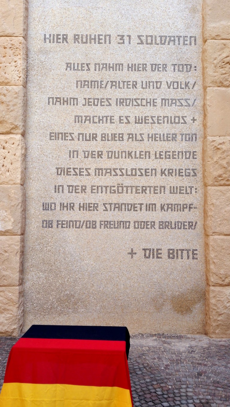 Um den 23. Oktober herum findet jedes Jahr in El Alamein eine Totenehrung durch die deutsche Botschaft statt. In Wechsel hält ein evangelischer oder katholischer Pfarrer eine Andacht, der Botschafter eine Ansprache, die anwesenden Militärs und Repräsentanten der an der Schlacht beteiligten Länder legen Kränze ab. Dies alles im eindrucksvollen Rahmen der Kriegsgräberstätte.