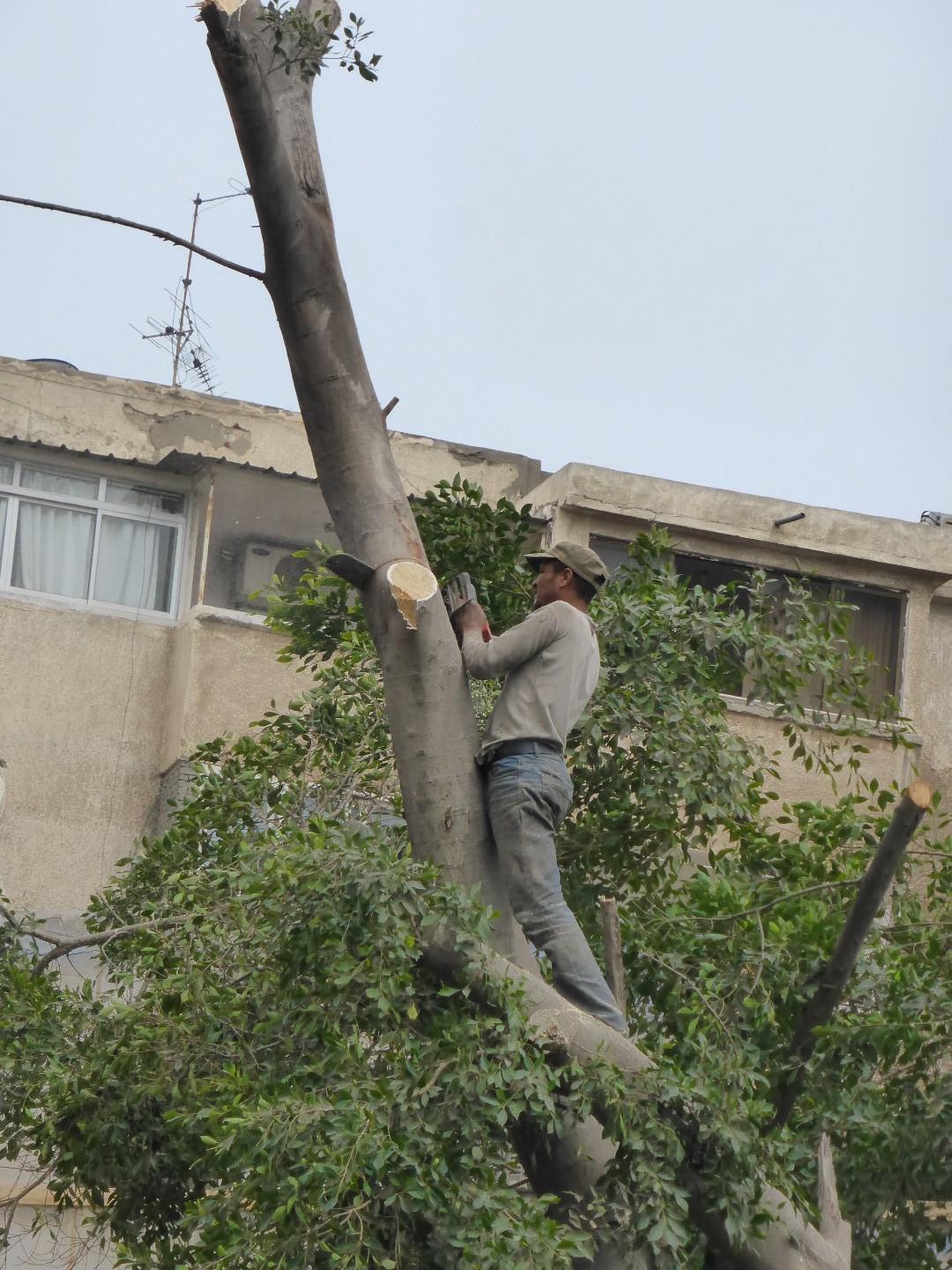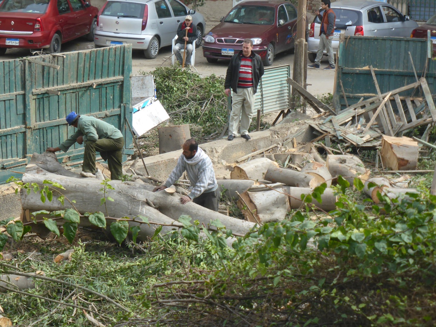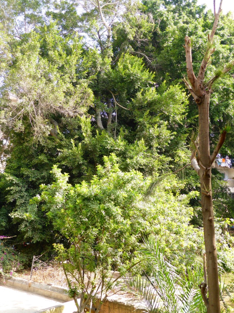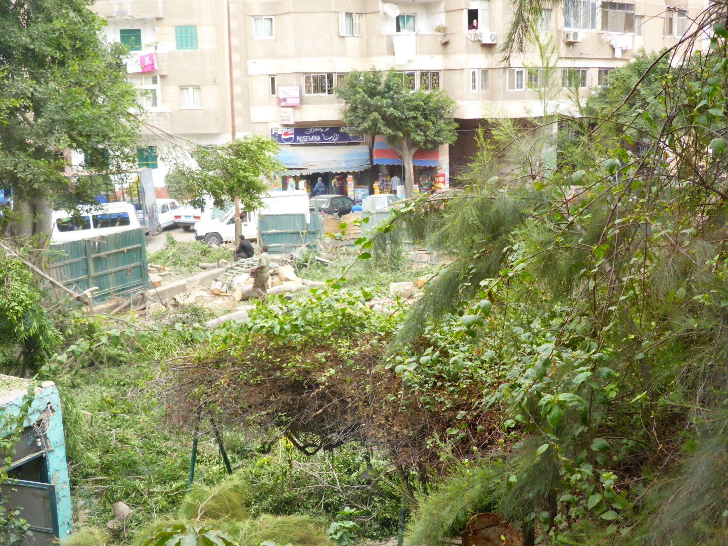 Vor kurzem wurde das Nachbarhaus auf der anderen Seite von unserem Grundstück verkauft, gleich darauf rückte das Baumfällkomando an und innerhalb von 2 Tagen waren sämtlichen uralten Riesenbäume gefällt. Es ist wirklich ein Riesenjammer!! Uns graut schon vor dem Tag, an dem die Abbruchmannschaft mit der Arbeit beginnt. Dann verliert der alte Stadtteil Wabour el Maya in Alexandria wieder ein Stück alte Baugeschichte, verbunden mit Lebensqualität durch ein bisschen letztes Grün, Licht, Luft, Platz für Vögel und wird durch ein unansehnliches Hochhaus ersetzt. Schade!