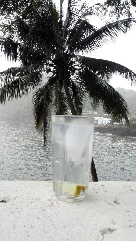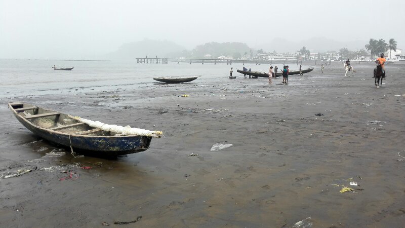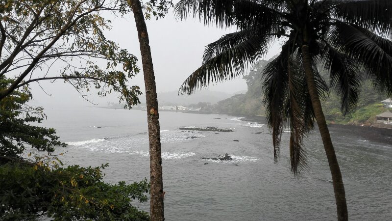 In Limbe herrscht zur Zeit eine sehr hohe Luftfeuchtigkeit, dazu ist noch etwas Sand in der Luft, so dass es auf den Bildern weitaus grauer aussieht, als es in Wirklichkeit ist.