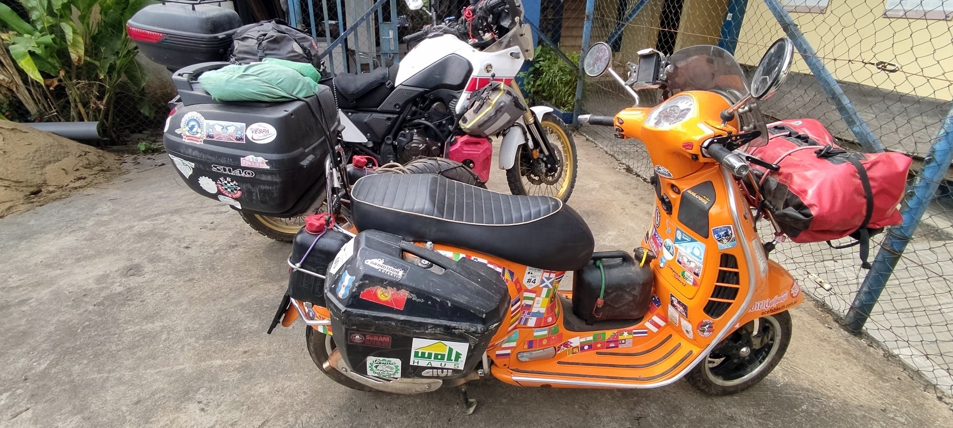 Eigentlich wollte der Österreicher mit seiner Vespa 100 Länder bereisen und war damit schon in China und allen möglichen anderen abgelegenen Orten der Welt. Durch seine Tour durch Afrika über Marokko, Mauretanien, Senegal und dann die ganze Westküste bis zu uns ist er mittlerweile schon auf 106 Länder gekommen und sein neues Ziel ist nun 150 Länder zu erreichen.