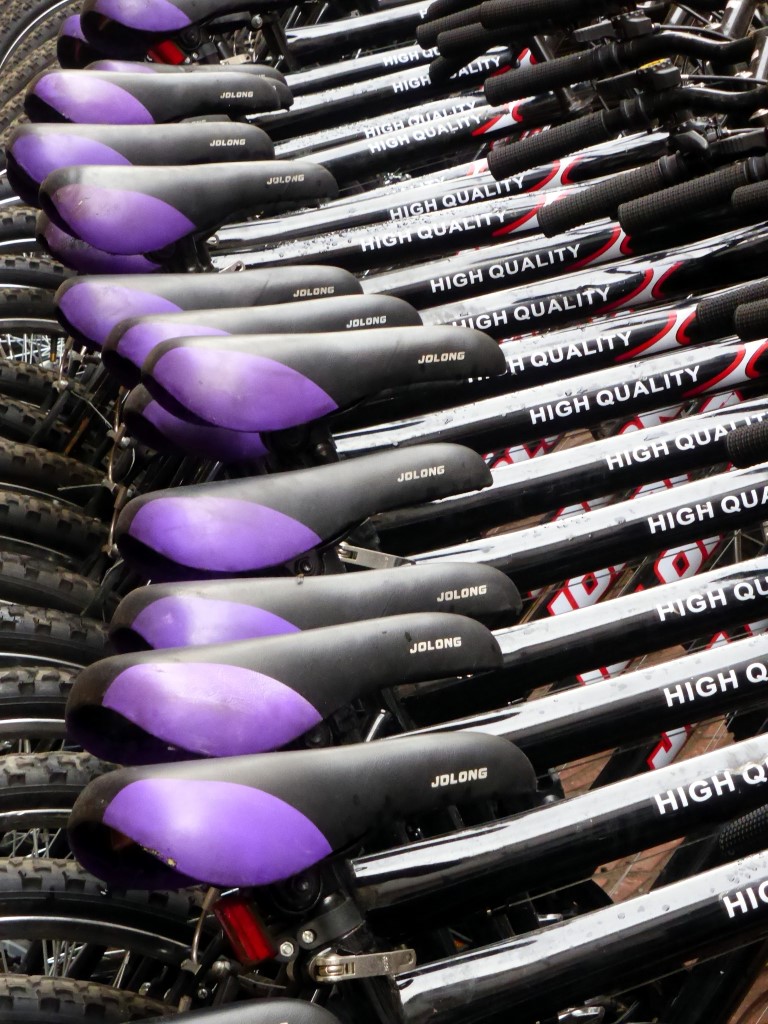 Da die Räder offensichtlich nach dem Verlassen der Fahrradfabrik keine Endmontage mit Festziehen der Speichen erfahren hatten, mangelte es am Ende der Tour nicht an tollen Achtern in Vorder- und Hinterrädern. Das geht ja auch recht schnell, wenn zum Beispiel immer wieder einzelne, virtuose Fahrradakrobaten frontal auf einen der hohen Bordsteine krachen.