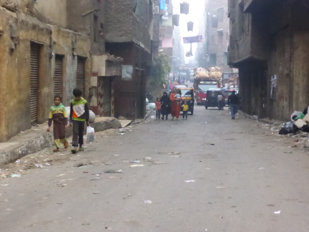 Wir sind hier, um den Abendgottesdienst im koptisch-orthodoxen Saint-Samaan-Kloster mitzufeiern. Es gibt keinen anderen Weg zu den eindrucksvollen Höhlenkirchen des Klosters als den mitten durch das Wohn- und Arbeitsviertel der Müllsammler.