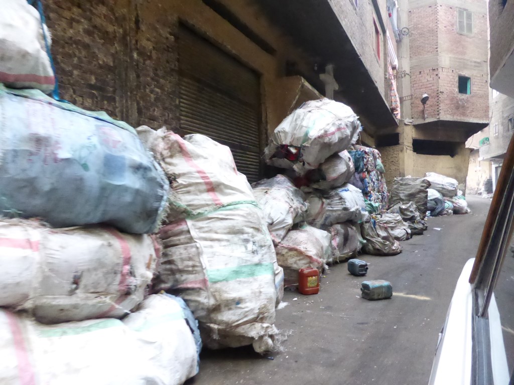 1969 verfügte ein Beschluss des damaligen Gouverneurs von Kairo, dass alle Müllsammler der Stdt sich in der Gegend unterhalb des Muqattam anzusiedeln hatten. Offenbar der Versuch, diese Menschen mit ihrem für viele abstoßenden Lebenswandel in eine Art Ghetto abzuschieben. Weit weg vom Blick der reicheren Städter. Heute gibt es viele solcher Müllsammlerviertel aber es sind nach wie vor überwiegend Christen, die in ihnen leben und arbeiten.