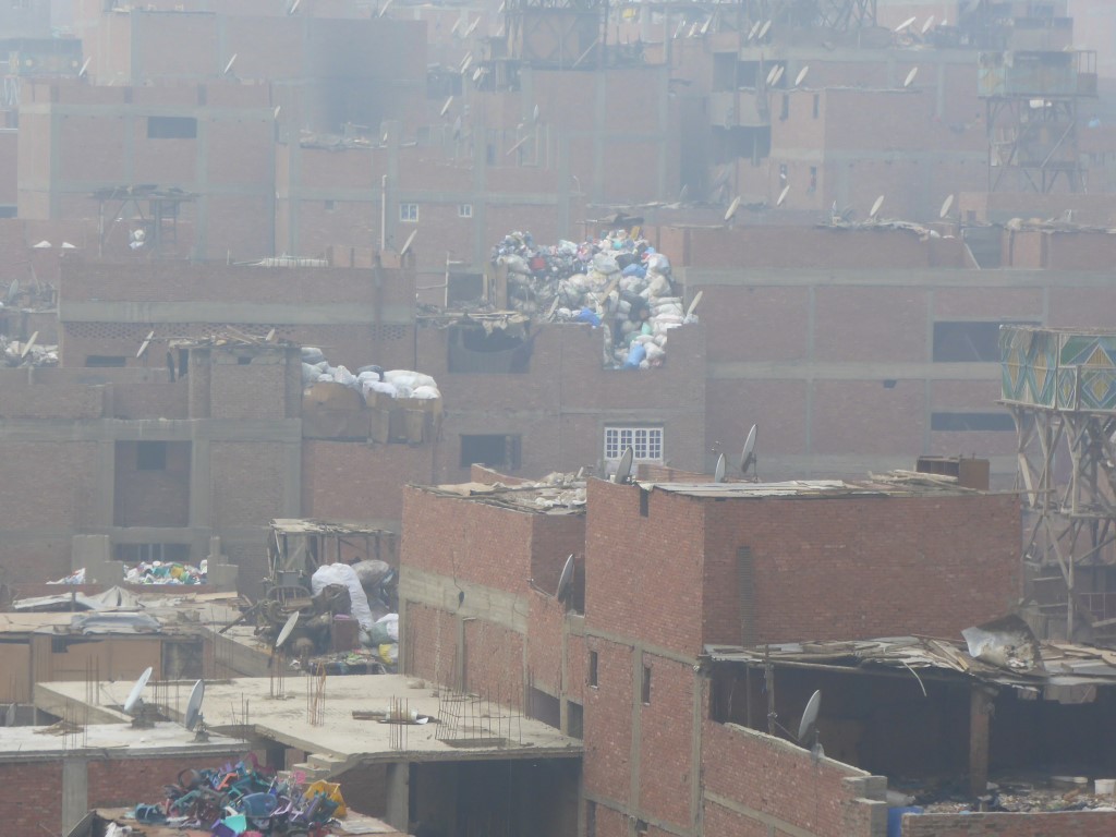 Nach und nach verwandelten sich die „Schweineställe“ in feste mehrstöckige Betonbauten. Nicht selten aber werden ganze Etagen dieser Häuser von Vieh- und Schweineherden „bewohnt“. Die christlichen „Zabballin“, die Müllsammler waren und bleiben den meisten Kairenern suspekt, auch wenn sie sehr nützlich sind und die Stadt ohne sie vor noch viel größeren Müllproblemen stehen würde. Heute leben in Manshiyet Nasr geschätzte 30 000 Menschen von und mit den Abfällen der Megacity.