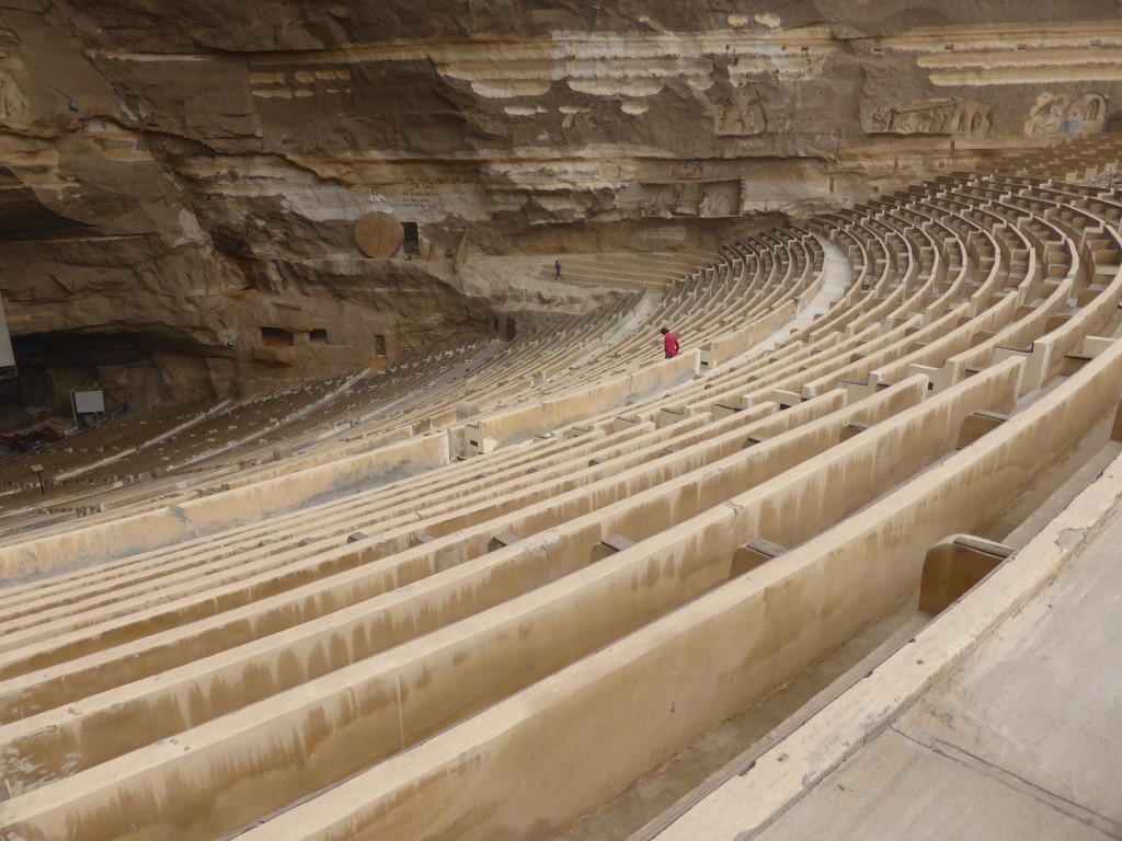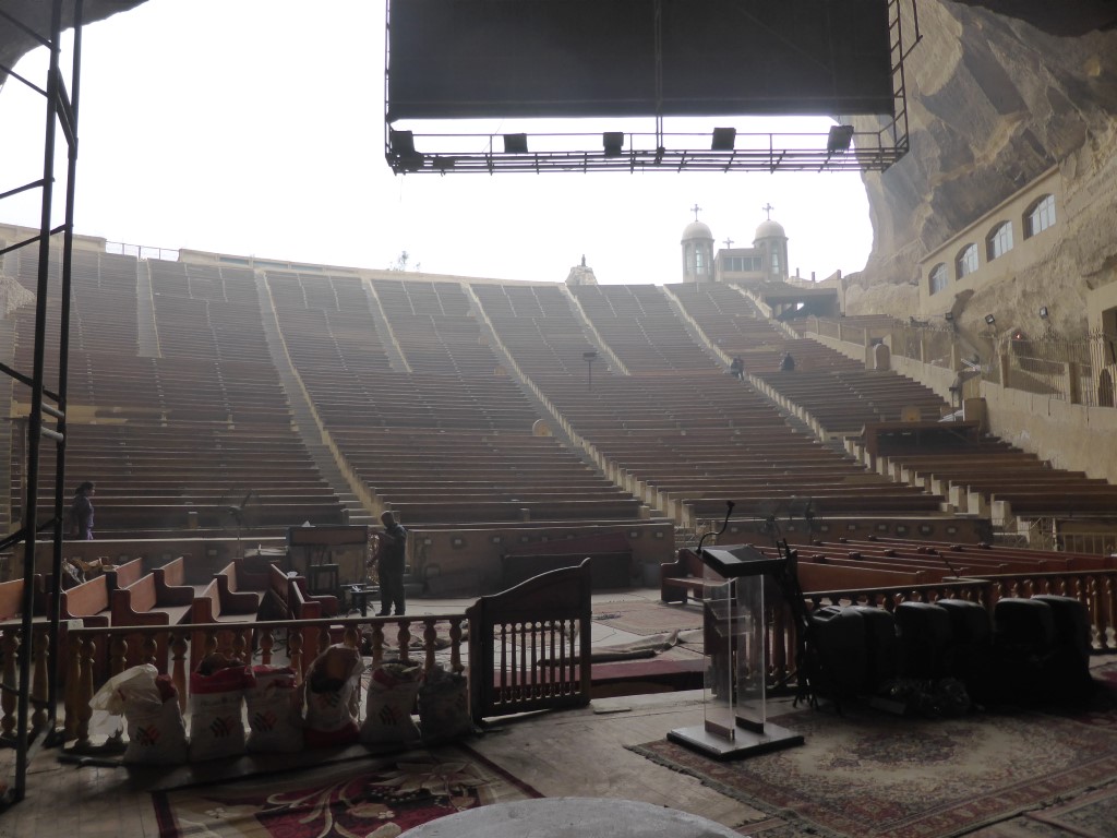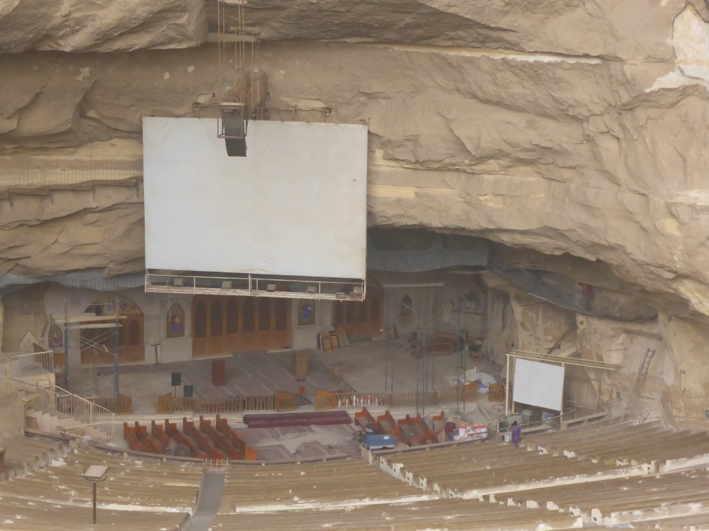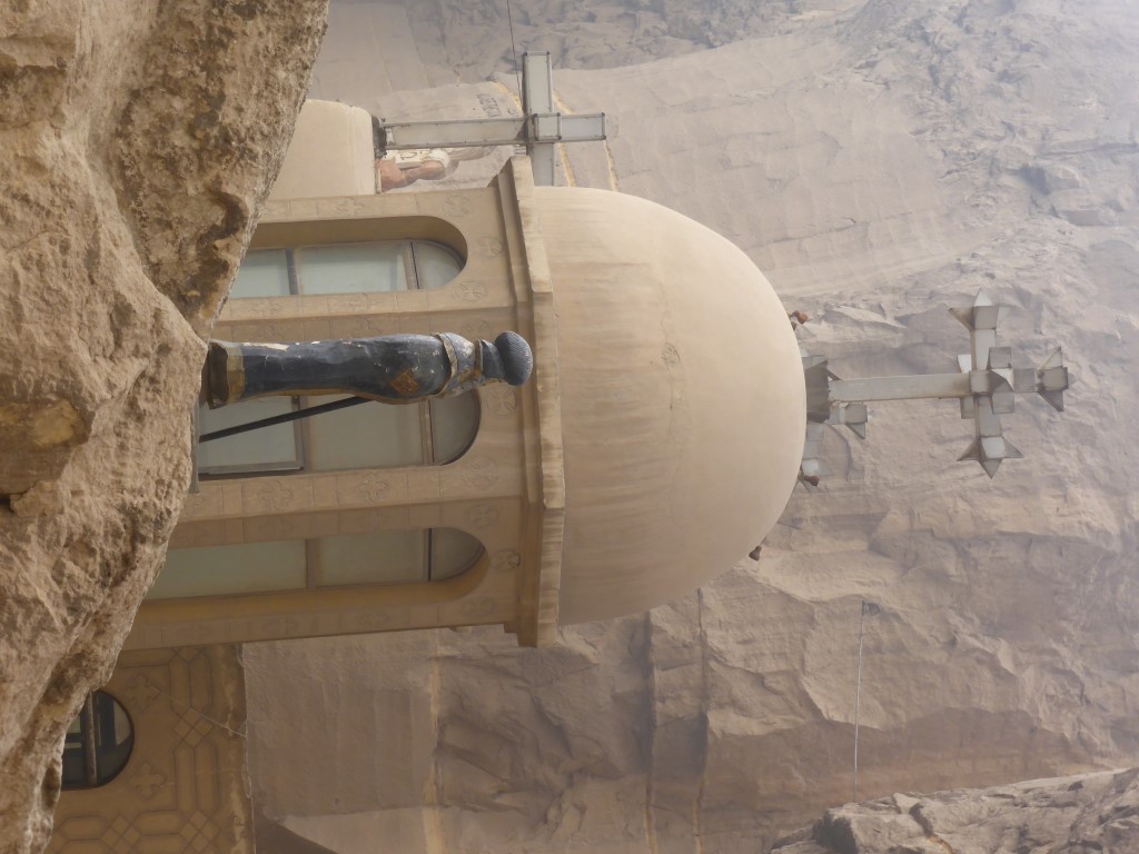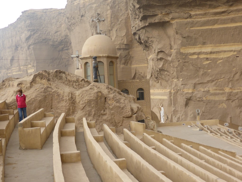 Kein Wunder also, dass die Luft im Minibus immer strenger riecht, während wir uns in Richtung Kloster durch die engen Straßen vorarbeiten. Ich frage mich, was im Kopf unseres muslimischen Busfahrers wohl vor sich geht. War er schon einmal hier? Und hat auch unsere wohlhabende christliche Vermieterin dieses Viertel schon einmal besucht? Ja, das hat sie sicher, fällt mir ein. Das wunderbare Saint-Samaan-Kloster, das sich direkt an die Häuser der Zabballin anschließt, wird sie auf jeden Fall schon mindestens einmal hierher geführt haben. Heute ist es ein bedeutender koptischer Pilgerort, nicht nur für Orthodoxe. Damals, als die Geschichte dieses Klosters begann, war diese Entwicklung überhaupt nicht abzusehen. Es begann mit dem einfachen Müllsammler Qiddies Agieb Abd Al-Masieh. Zwei Jahre lang versucht er vergeblich, einen Priester, den er in seinem Müllsammelquatier in Shubra kennen gelernt hatte, davon zu überzeugen, dass die Menschen in Manhiyet Nasr Gottesdienste und geistlichen Beistand brauchten. Selbst dem Priester war nicht wohl bei dem Gedanken, ausgerechnet in einer solchen Gegend das Evangelium verkünden zu sollen. Die Legende erzählt, dass er am Ende keine andere Wahl hatte. Selbst ein Fluchtversuch, ähnlich dem des Propheten Jona, misslang, so dass er sich 1974 endlich dem Ruf Gottes fügte und mit dem Aufbau einer Gemeinde im Müllsammlerinnen und Müllsammler begann. Was heute daraus geworden ist, versetzt mich in Erstaunen.